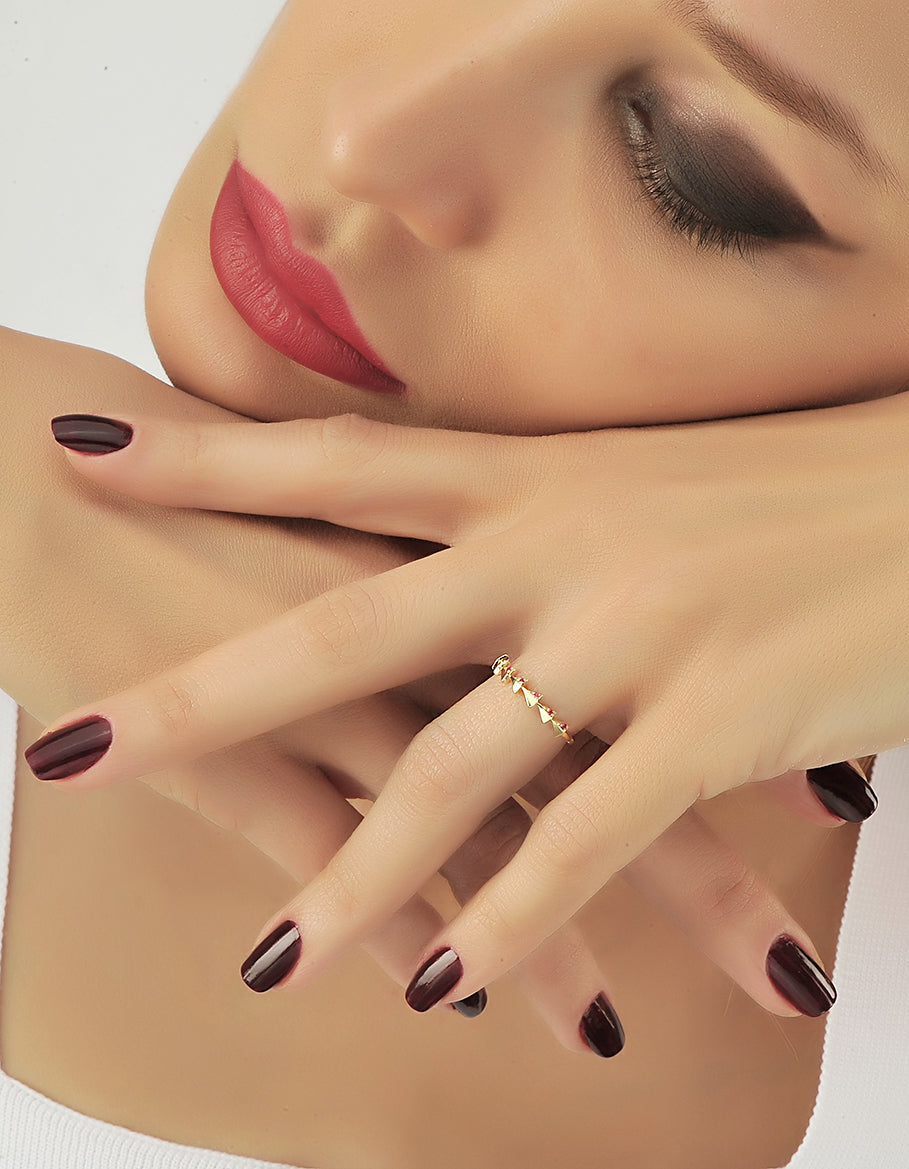 Driehoek Vormige Halve Eeuwigheid Ring, Driehoek Cluster Rode Robijn Diamanten Ring, Handgemaakte 14k Gouden Gebogen Golvende Ring